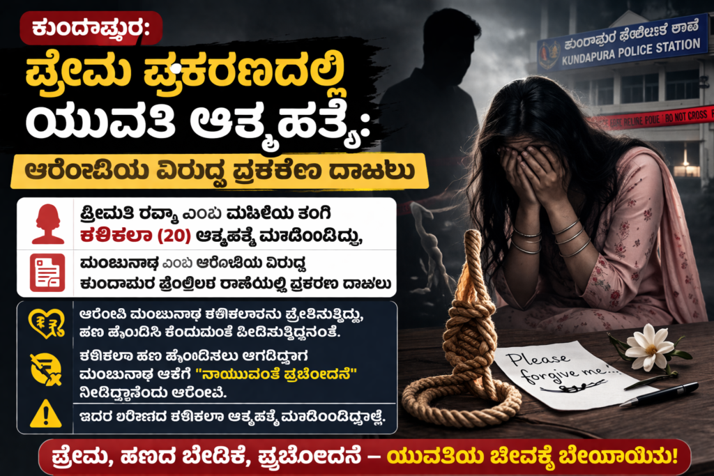 ಕುಂದಾಪುರದಲ್ಲಿ ಯುವತಿ ಆತ್ಮಹತ್ಯೆಗೆ ಪ್ರಿಯಕರನ ಕುಮ್ಮಕ್ಕು