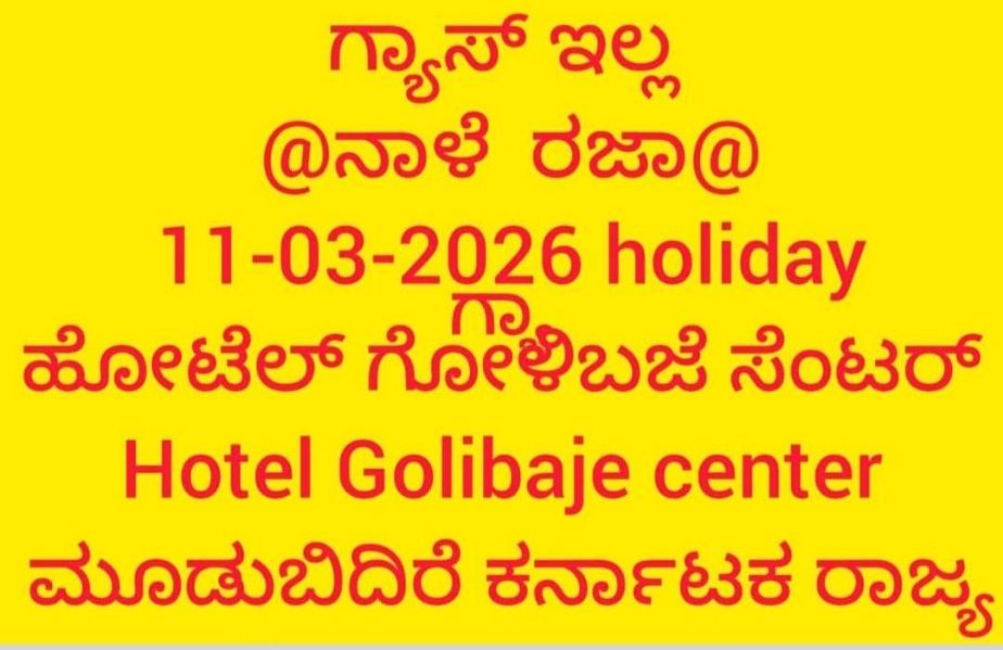 ಮೂಡಬಿದ್ರೆಯ ಗೋಳಿಬಜೆ ಸೆಂಟರ್ ಗ್ಯಾಸ್ ವ್ಯತ್ಯಾಯದಿಂದಾಗಿ ಇಂದು  ಕಾರ್ಯನಿರ್ವಹಿಸಲು ಆಗುತ್ತಿಲ್ಲ ಎಂಬ ಮೆಸೇಜನ್ನು ಆ ಹೋಟೆಲ್ ಗ್ರಾಹಕರಿಗೆ ಸೋಶಿಯಲ್ ಮೀಡಿಯಾಗಳ ಮೂಲಕ ಸ್ವತಃ ಅದರ ಮಾಲಕರೇ ರವಾನಿಸಿದ್ದಾರೆ.